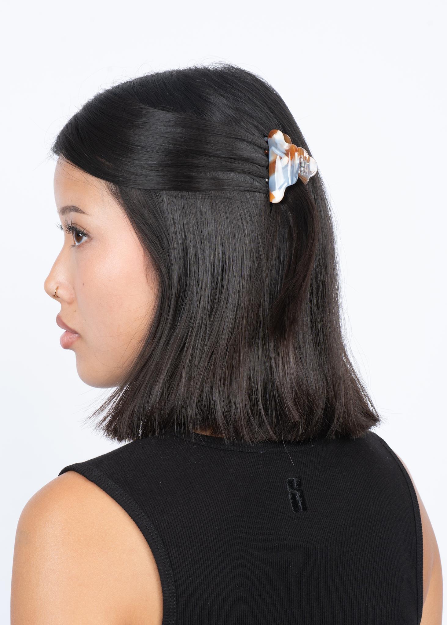 Lene Icy Mini i Salted Caramel er en elegant lille hårklemme i blank brun acetat med bløde kurver og stærk fjeder 🤎✨