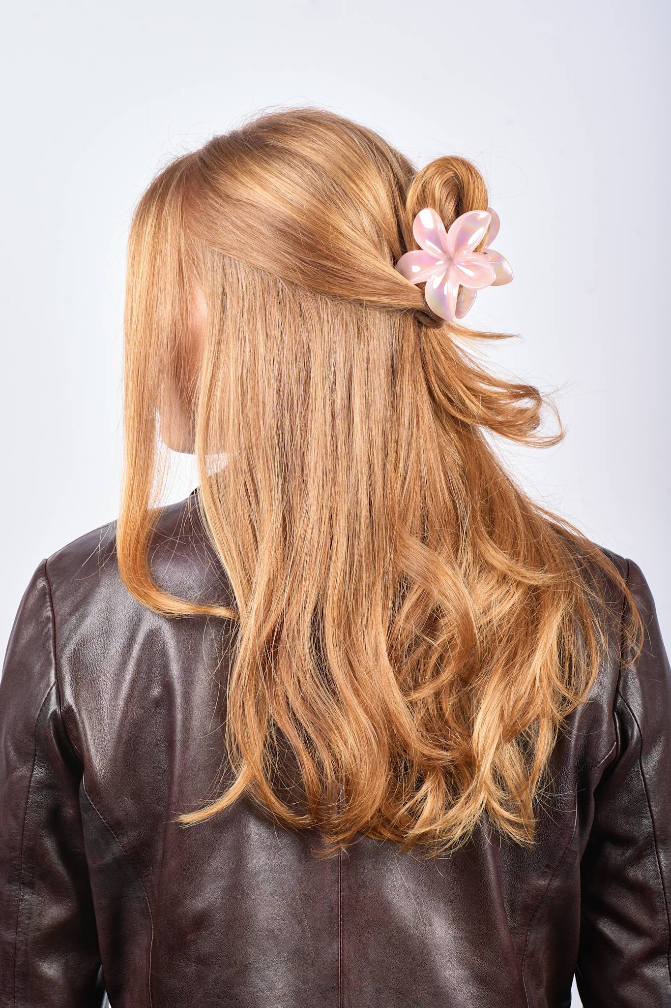 Plumeria Pastel Big in Blue is a beautiful hair claw inspired by the soft, natural curves of the Plumeria flower.