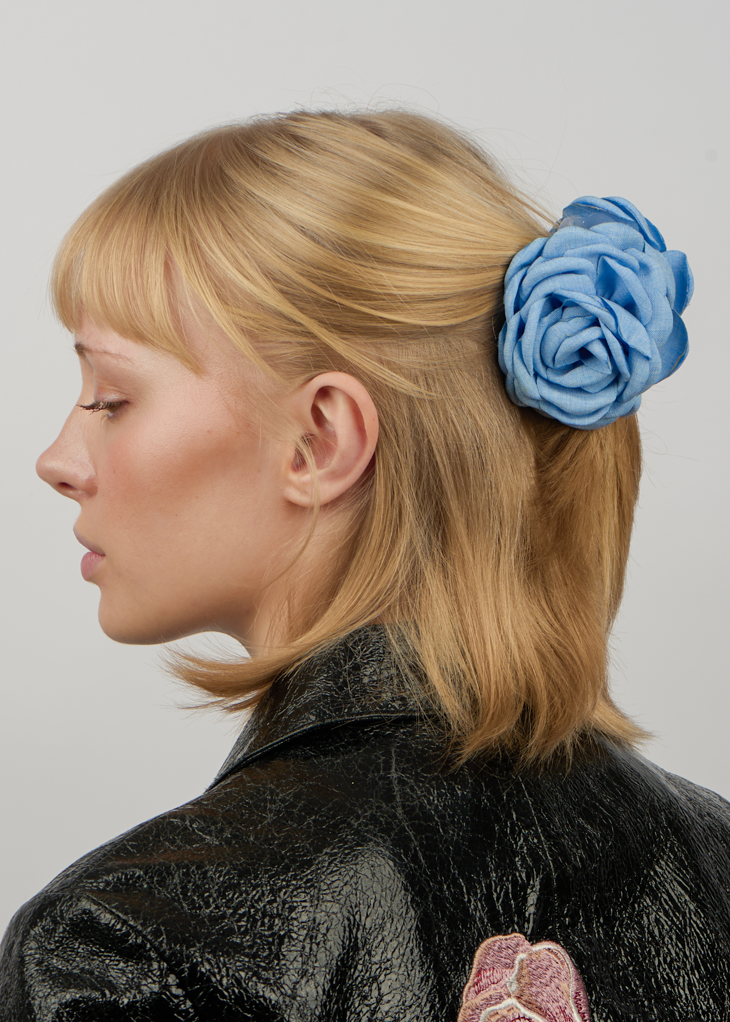 Rosa Hair Claw in light blue is a beautiful and decorative hair claw shaped like a large flower. The soft light blue shade adds a calm and sophisticated touch, while the unique design gives your hairstyle a feminine feel. With its strong grip, the claw keeps your hair securely in place all day - whether your hair is fine or thick 🩵