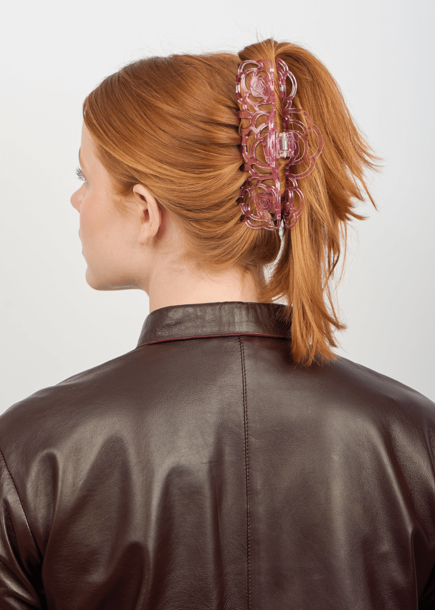 Rosie Giga keeps your hair securely in place and is ideal for a loose bun, a half-up hairstyle, or as a decorative element in your look. The beautiful rose details and translucent finish provide a light and elegant expression.