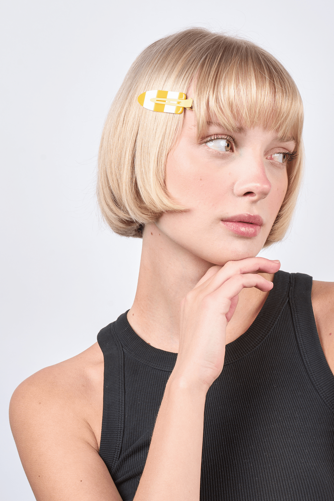 Give your hairstyle a fresh and colorful lift with the Striped Clips in a radiant yellow hue.