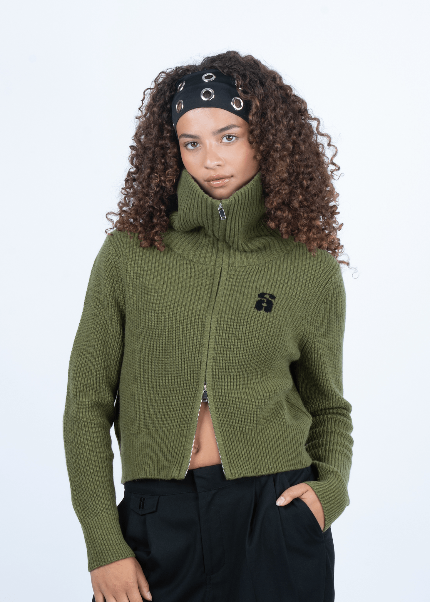 Our Two-Way Zip Wool Knit is a cozy and stylish cardigan with a ribbed texture and high collar. The double zipper makes it easy to style however you like - fully zipped for a classic look or slightly open for a relaxed vibe. The embroidered logo on the chest adds a sporty touch, while the snug yet soft fit makes it perfect for everyday wear and chilly days on the go 🌿